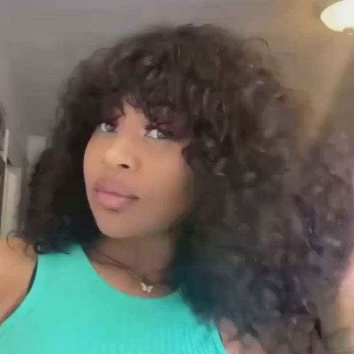 Perruque frisée cheveux humain brésilien naturel avec frange